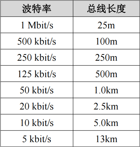 表3.1波特率與最大總線長(zhǎng)度參照表