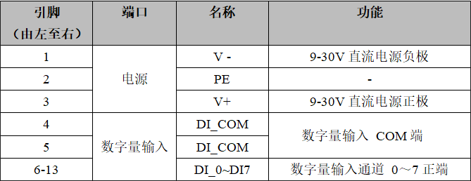 電源及8路開關(guān)量輸入接口定義