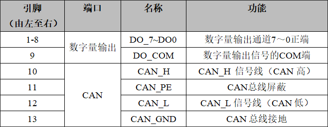 CAN-bus接口、8路開關(guān)量輸出接口定義
