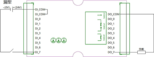 GCAN-4057模塊漏型輸入、PNP輸出接線如圖所示: