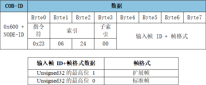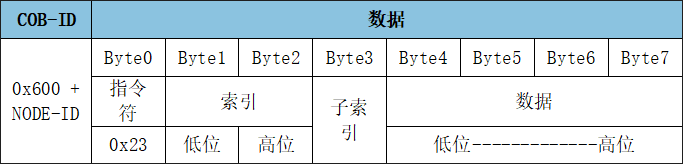 SDO寫入對象字典中數(shù)據(jù)類型的長度為32位參數(shù)命令: