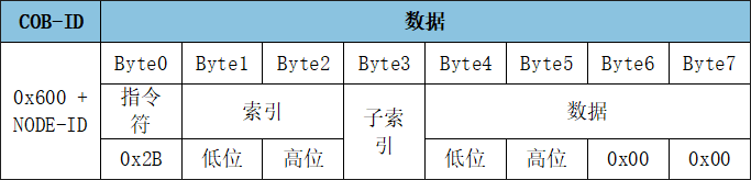 SDO寫入對象字典中數(shù)據(jù)類型的長度為16位參數(shù)命令: