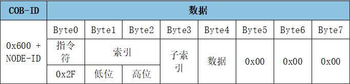 SDO寫入對象字典中數(shù)據(jù)類型的長度為8位參數(shù)命令: