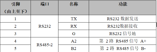 GCAN-PLC-220的主控模塊左側(cè)底板從上到下,依次是CAN總線接口、RS232總線接口、第2路RS485總線接口和電源接口,如上圖所示。各個(gè)端子對(duì)應(yīng)的序號(hào)及其含義如表所示。