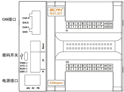 GCAN-4032 CANopen遠(yuǎn)程IO模塊指示燈