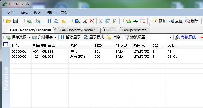 接收到NMT指令之后,GCAN-4032將開始廣播PDO數(shù)據(jù),并發(fā)出幀ID為0x701,幀數(shù)據(jù)為0x05的心跳指令,說明GCAN-4032已進(jìn)入操作狀態(tài)。