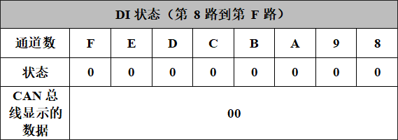 數(shù)字量輸入的狀態(tài)由兩個(gè)字節(jié)來(lái)表示,第0到7路由第一個(gè)字節(jié)表示;第8到F路由第二個(gè)字節(jié)表示。舉例:第一個(gè)字節(jié)里通道8在高位,通道1在低位。