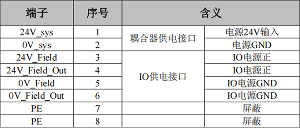 表2.2 PLC主控模塊電源接線端子定義