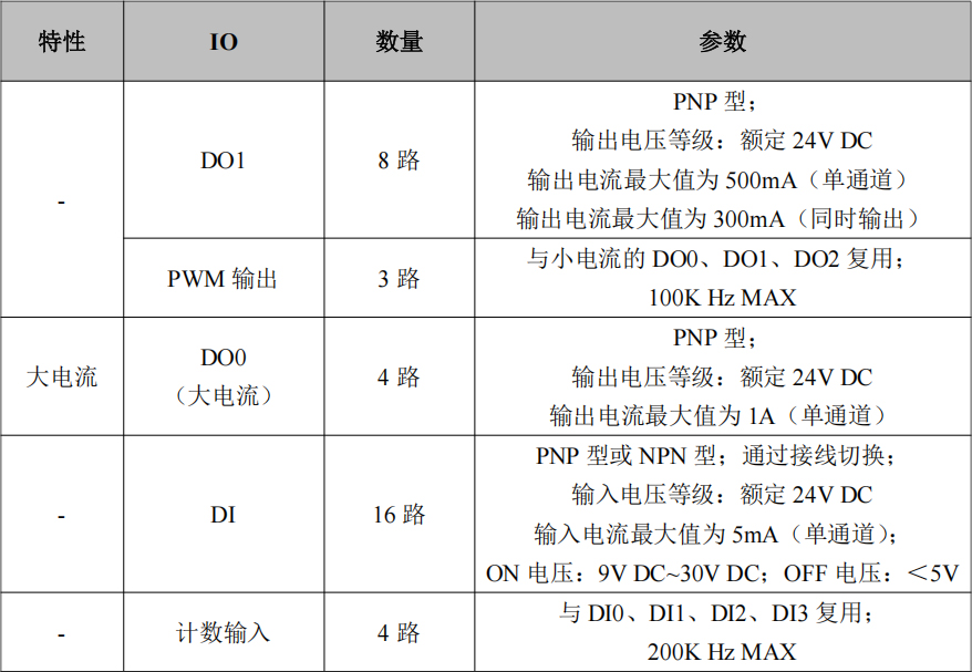 (4)8路普通DO(復(fù)用3路PWM脈沖輸出)+4路大電流DO(1A/路);