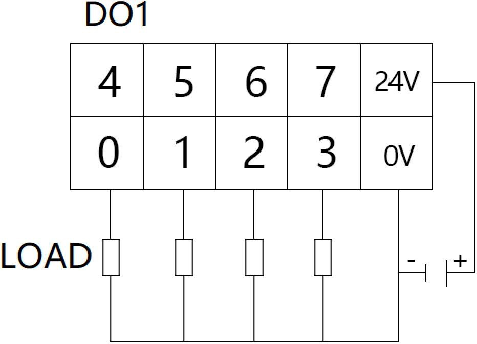 DO1端子排晶體管PNP輸出接線如圖所示: