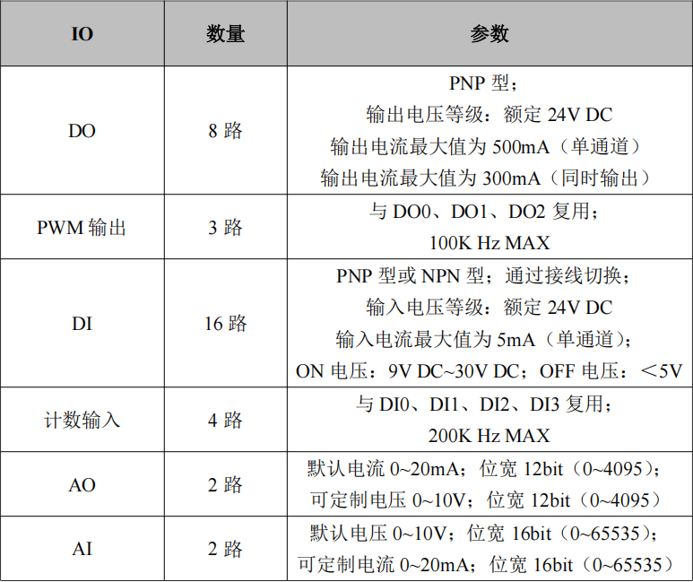 (6)8路DO(3路PWM脈沖輸出);16路DI(4路計數(shù)輸入);