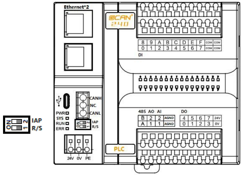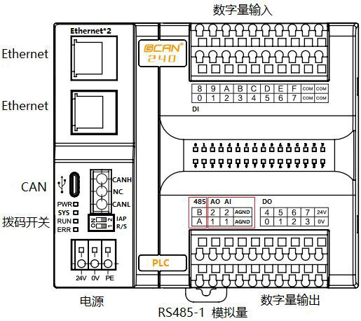 圖2.4 GCAN-PLC-240各接口位置