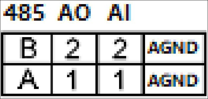 下方兩排端子排的左側(cè)為RS485、AI和AO端子排,如圖所示。RS485端子對應(yīng)的序號及其含義如表2.5所示。