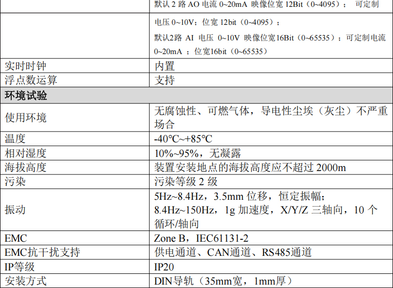 (10)工作溫度范圍:-40℃~+85℃;(11)防護等級:IP20;