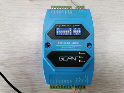 沈陽(yáng)廣成科技GCAN-4068模塊是集成1路標(biāo)準(zhǔn)CANopen接口、8路0-24mA電流輸出的工業(yè)級(jí)CANopen模擬量輸出模塊。采用GCAN-4068模塊,用戶可輸出電流信號(hào),實(shí)現(xiàn)遠(yuǎn)程設(shè)備和CANopen網(wǎng)絡(luò)之間的連接,構(gòu)成CANopen網(wǎng)絡(luò)中信號(hào)輸出的控制節(jié)點(diǎn)。GCAN-4068模塊是模擬量信號(hào)輸出的關(guān)鍵性工具,同時(shí)該模塊具有體積小巧、接線便捷等特點(diǎn)。GCAN-4068模塊的總線接口集成隔離保護(hù)模塊,使其避免由于瞬間的過(guò)壓過(guò)流而對(duì)模塊造成損壞。采用DIN導(dǎo)軌的固定方式,可使其更容易集成到各種控制柜中。