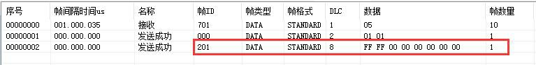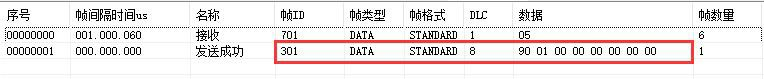 報(bào)文:ID:0x000數(shù)據(jù):01 01,設(shè)置模塊為05啟動(dòng)狀態(tài)。