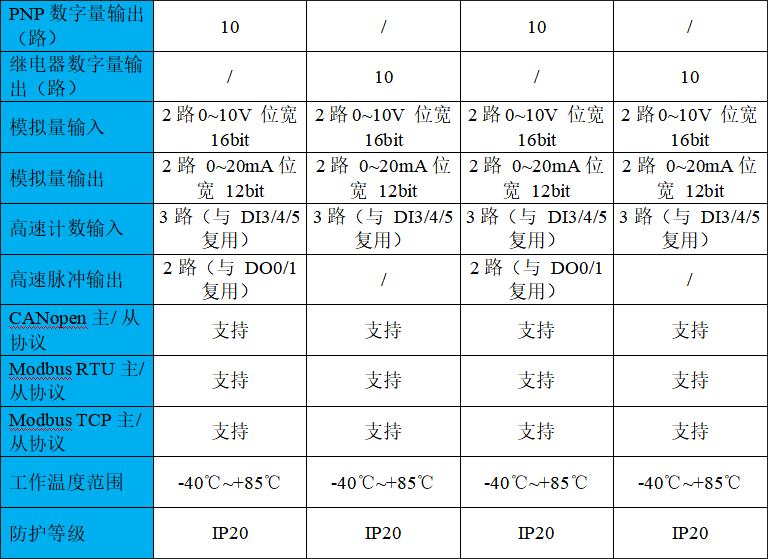 2路12-24V DC PWM高速脈沖輸出(與DO0、DO1復(fù)用,最大脈沖輸出50KHz);