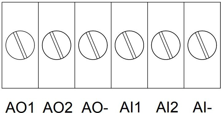 GCAN-PLC-324E/R系列的主控模塊含有一組模擬量接口接線端子排,如圖所示。