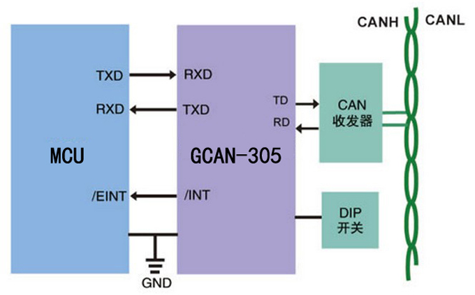 GCAN-305模塊標(biāo)準(zhǔn)工作環(huán)境如上圖所示,模塊可以支持多達(dá)12個(gè)RPDO和TPDO過(guò)程數(shù)據(jù)傳輸,適用于各種CANopen通信的場(chǎng)合。模塊同時(shí)具有體積小巧、實(shí)時(shí)性高等優(yōu)點(diǎn),使GCAN-305模塊非常易于嵌入到用戶設(shè)備中,讓用戶的設(shè)備即刻擁有強(qiáng)大的CANopen總線功能。